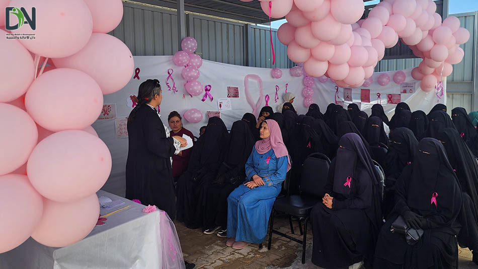 في إطار حملة أكتوبر الوردي الهادفة إلى نشر الوعي حول أهمية الكشف المبكر عن سرطان الثدي، نظّم فريق منظمة دان للإغاثة والتنمية في القسم السابع بمخيم الهول جنوب شرقي الحسكة فعالية توعوية تحت شعار “الكشف المبكر حياة”.