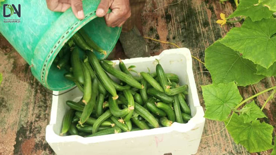The Farmer Field Schools implemented by the Dan Foundation for Relief and Development in Al-Raqqa Governorate have begun to witness the ripening of the cucumber crop, as participating farmers have reached the harvesting stage. This comes within the framework of a project aimed at empowering agricultural cooperatives and training youth and women in climate-smart agricultural practices